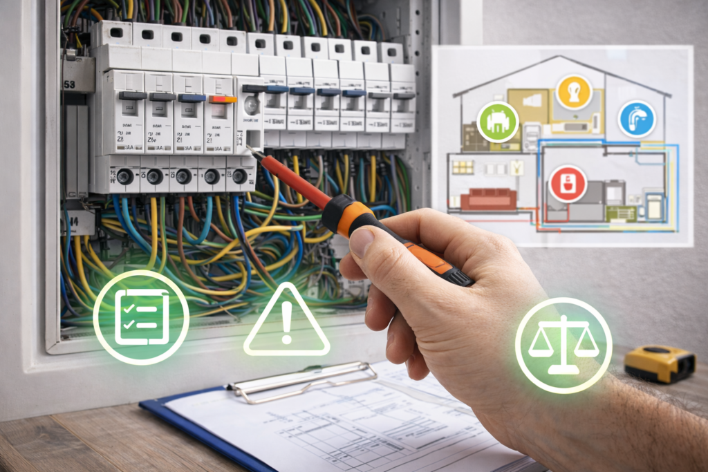 La clave de la instalación eléctrica es el Cuadro General de Distribución (CGD). Este cuadro debe tener un mínimo de protecciones generales (IGA y Diferenciales) y varios Circuitos Internos (PIAs) obligatorios para separar las cargas. Concepto Básico: Cada circuito debe tener un PIA (Pequeño Interruptor Automático) dedicado para que, en caso de cortocircuito o sobrecarga, solo […]