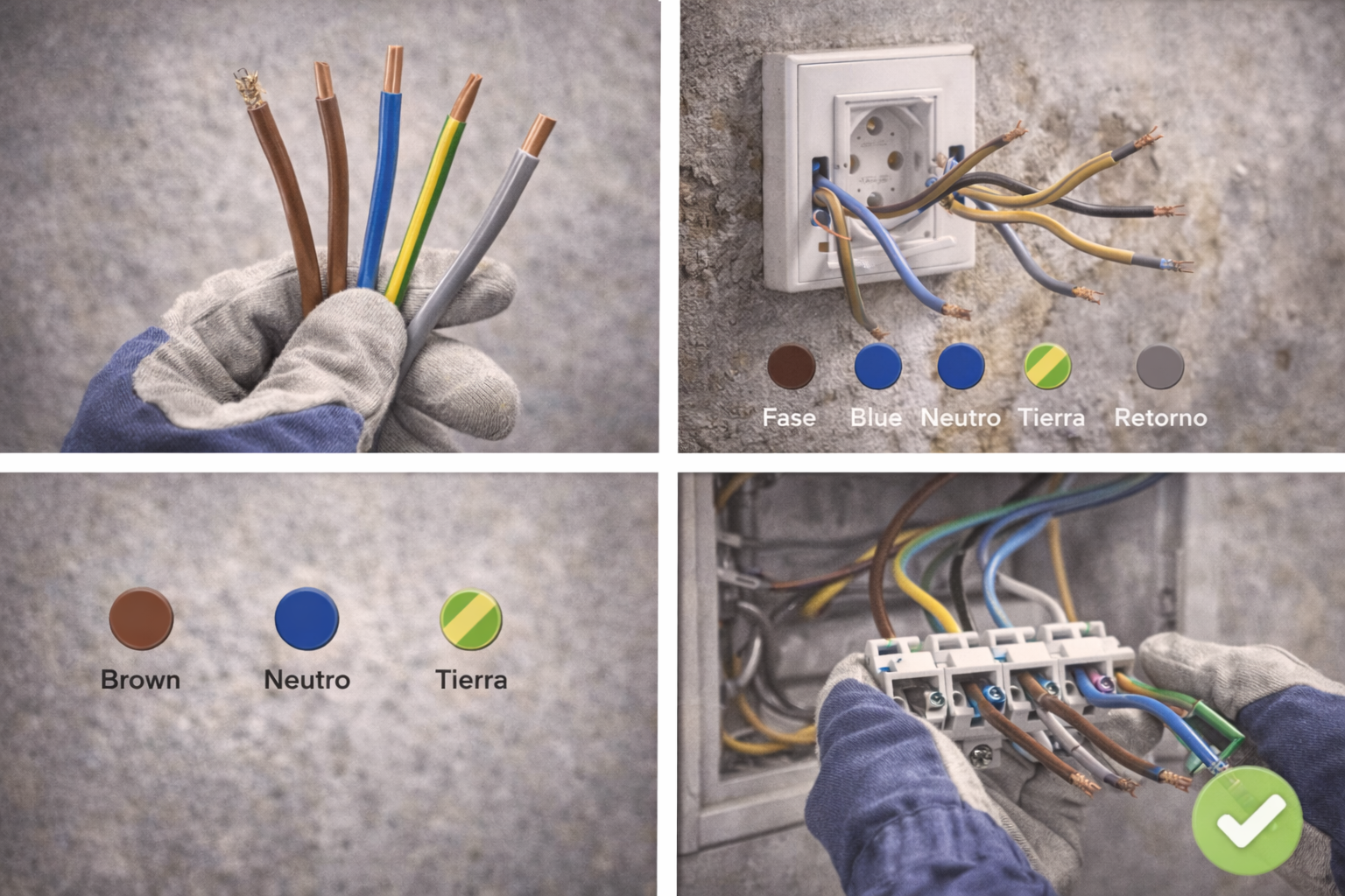 - Verificación: Nunca confíes únicamente en el color, especialmente en instalaciones desconocidas o antiguas. Utiliza herramientas de medición (polímetro, detector de tensión) para confirmar la función de cada cable.